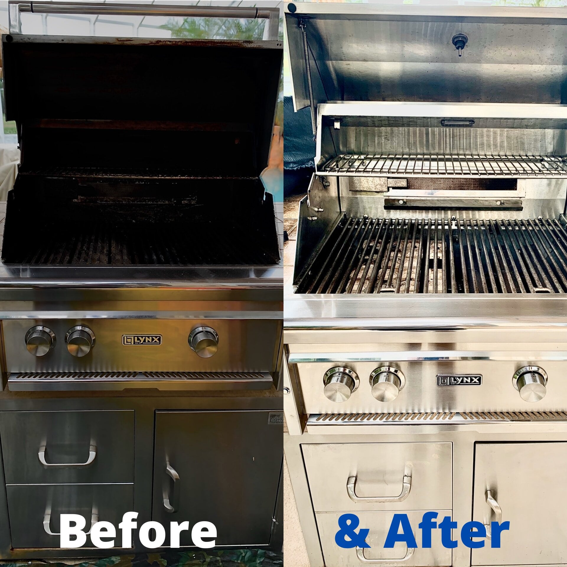 The grill cleaning guys did an amazing job on my outdoor kitchen. It was completely black on the inside and they made it look like new in just a few hours. They also cleaned my very dirty exhaust hood and it came out beautiful. Thanks again.